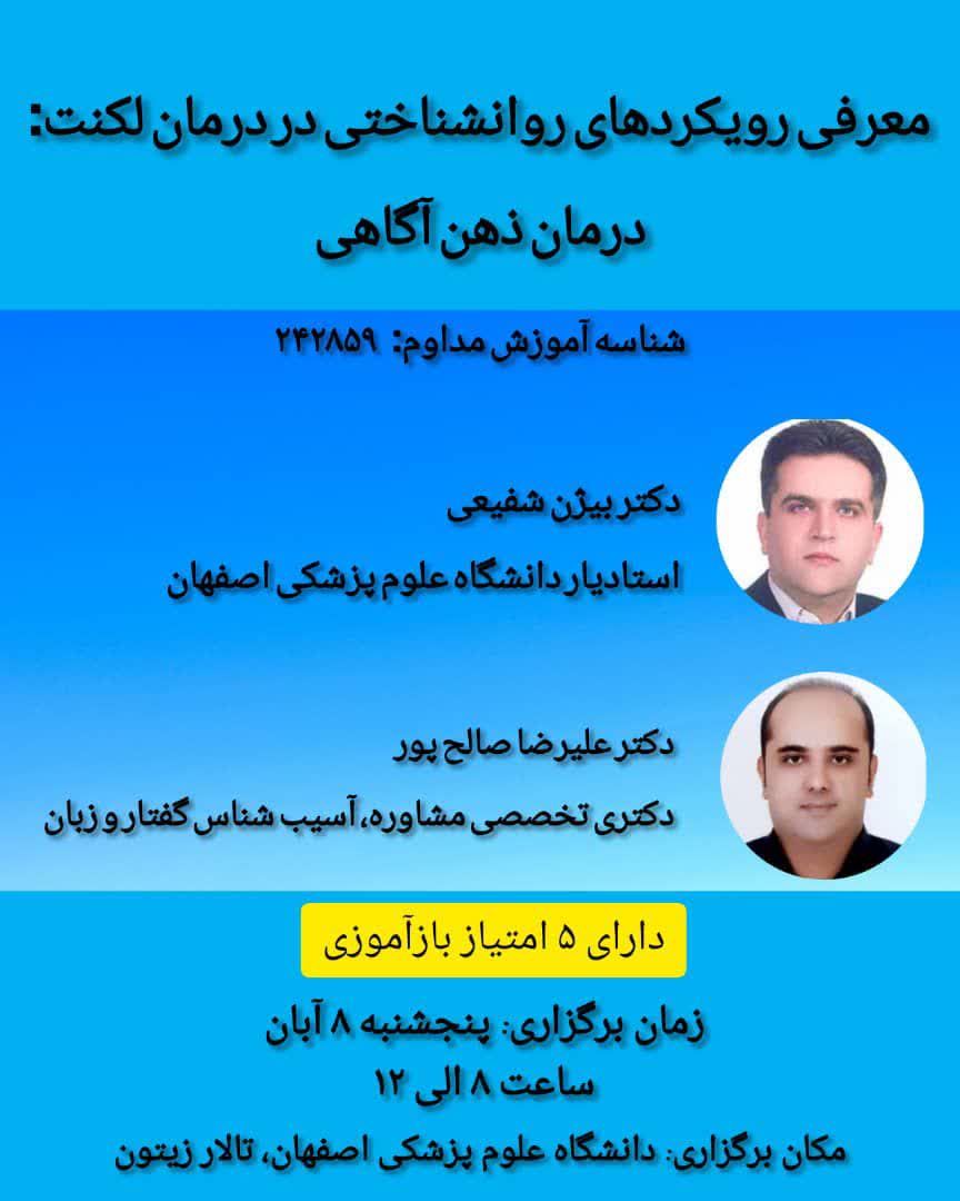 کارگاه معرفی رویکردهای روانشناختی در درمان لکنت